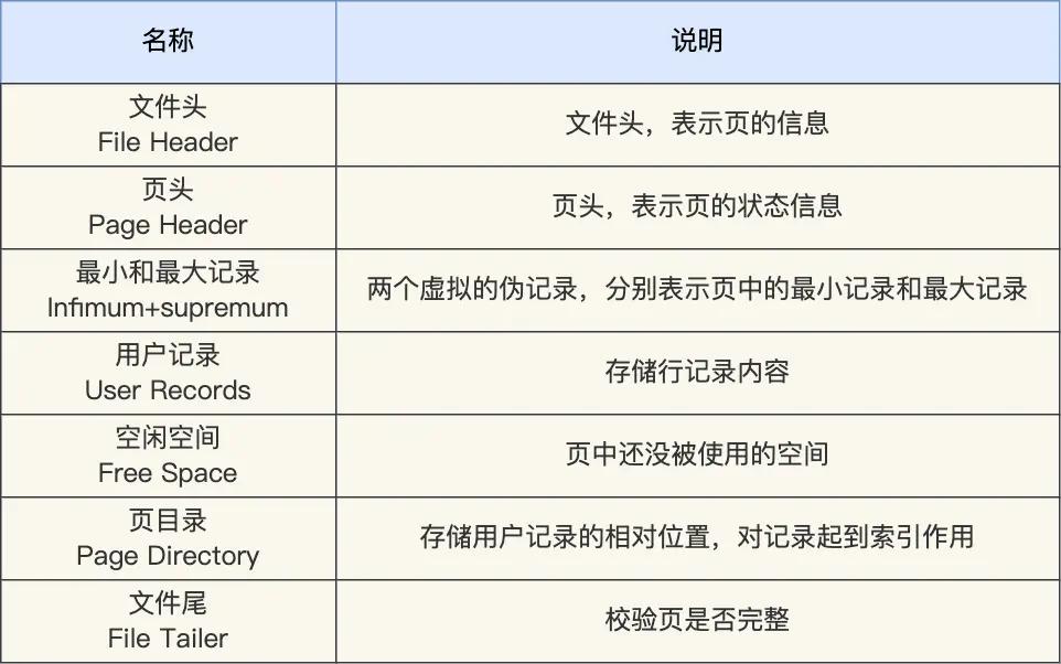 一个数据页包含七个部分: